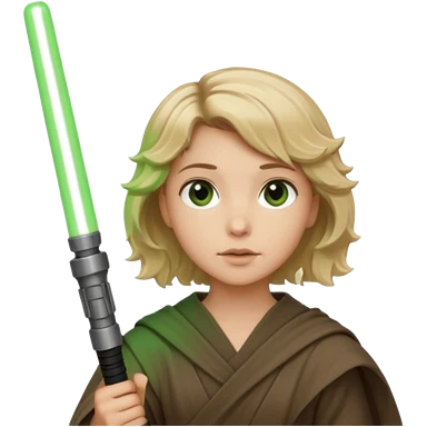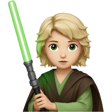 Young jedi with dirty blonde wavy hair holding a green lightsaber emoji