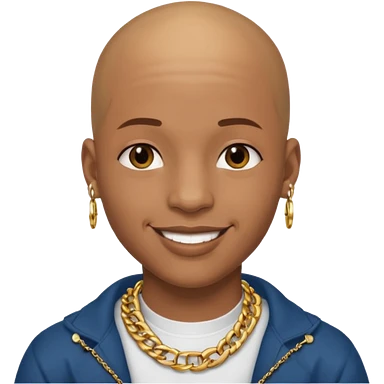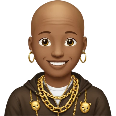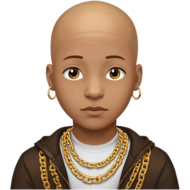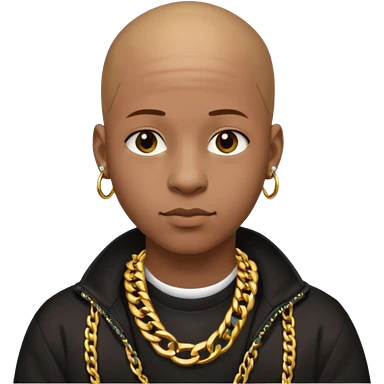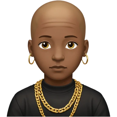 Young African rapper, bald with chain emoji