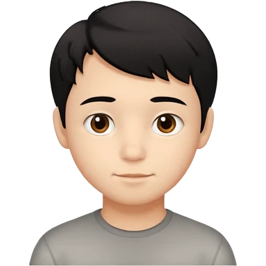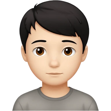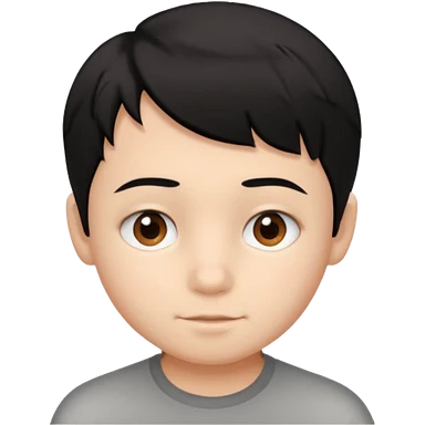 young boy with short, slightly messy black hair, a round face, large brown eyes, and a small neutral smile emoji