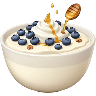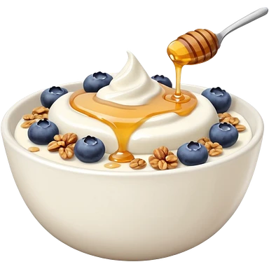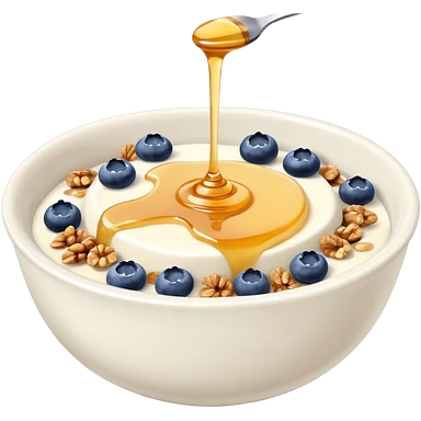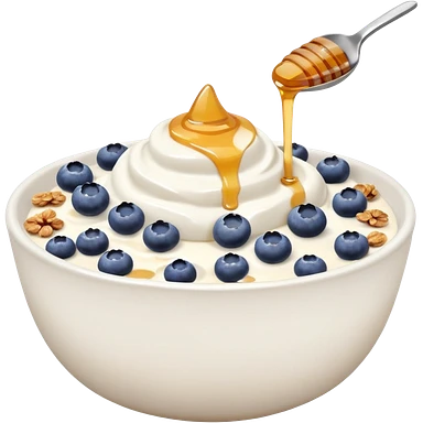 Yogurt in a bowl with granola and blueberries topped with honey drizzle emoji