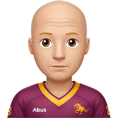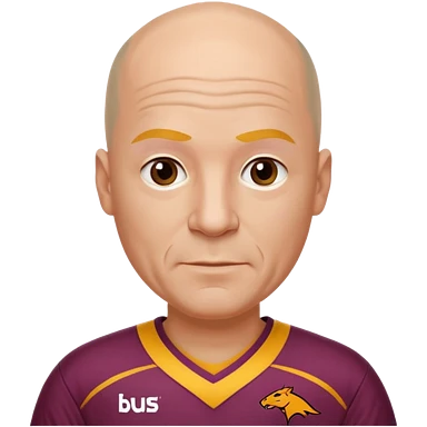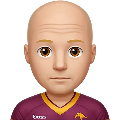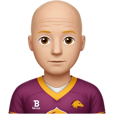 young-ish 50 year old man dressed in a brisbane broncos jersey, bald head, fair skin, happy face, blueish green eyes emoji