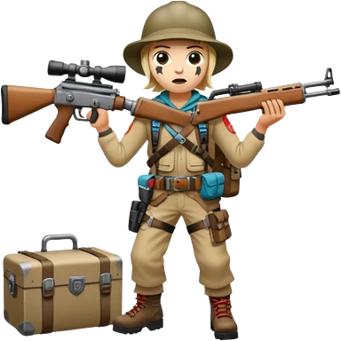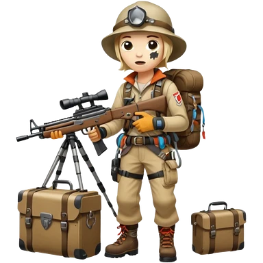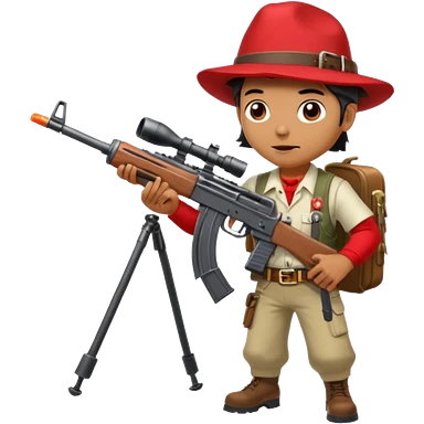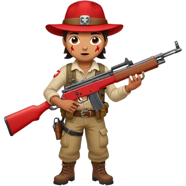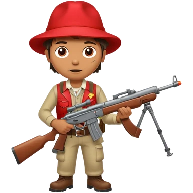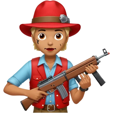 Yodeling mountain climber in Switzerland with a machine gun pointing to the right, full body, in the style of your bleeding skull art emoji