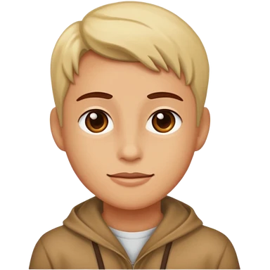 Young beggar little girl character, chest-up portrait, wearing worn and oversized clothes, hair is visible, neutral earth-tone fabric, slightly messy hair peeking from under a hood, tired but gentle eyes, subtle dirt marks on face, emoji