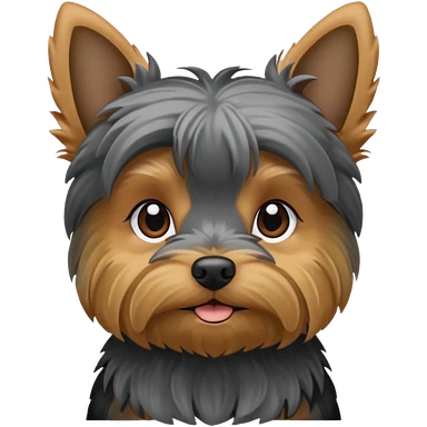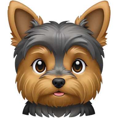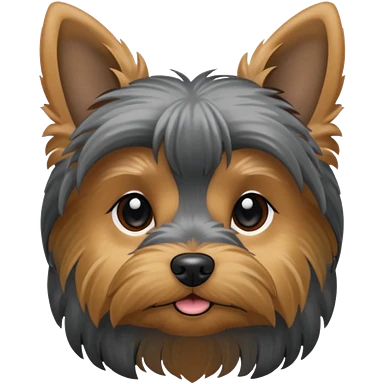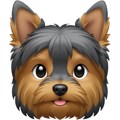 Yorkie with lowered down ears, mostly dark and grey, small emoji