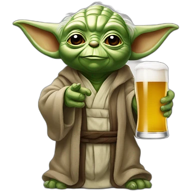 Yoda buvant une bière le bras levés emoji