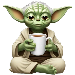 yoda drinking a cup of tea while winking emoji | AI Emoji Generator