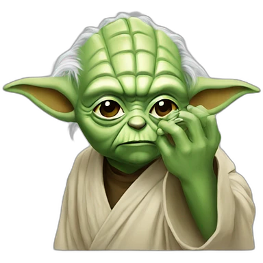 Baby Yoda with a wrench and tired expression. tired from long repair, wipes the sweat off his face. emoji
