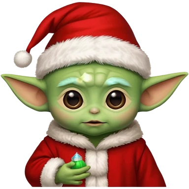 Yoda with pink Santa hat and candy cane lightsaber emoji