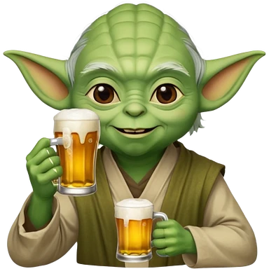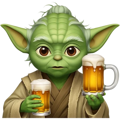 Yoda with a cup of bear emoji | AI Emoji Generator