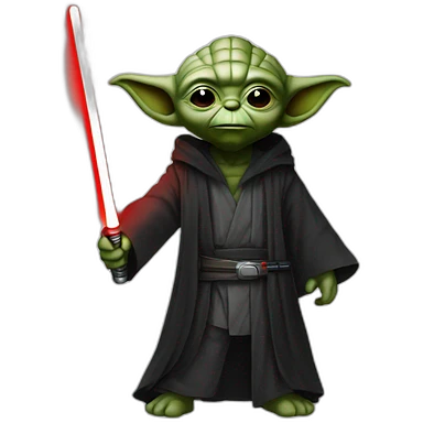 Create a baby Yoda with a lightsaber and a black cape, baby Yoda must be sinister emoji