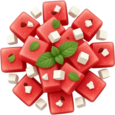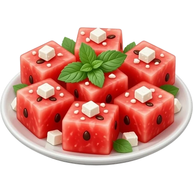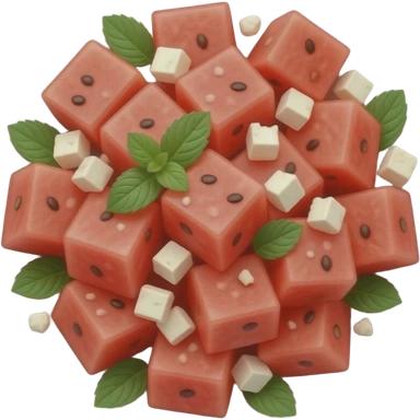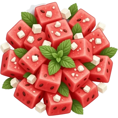 WATERMELON salad with feta and mint on a plate emoji