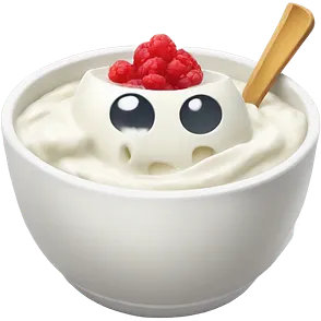 yogurt bowl with banana and bluberries with peanut butter on top and honte emoji