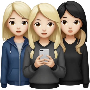 Korean 4 girls, hair colors: 1 blonde, 2 black, 1 brown emoji
