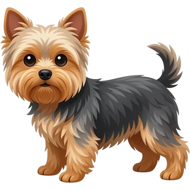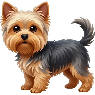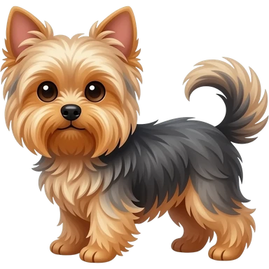 Yorkie with lowered down ears, mostly dark and grey, small emoji