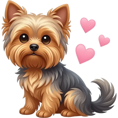 Yorkie dog long tail ears droopy sitting with hearts emoji