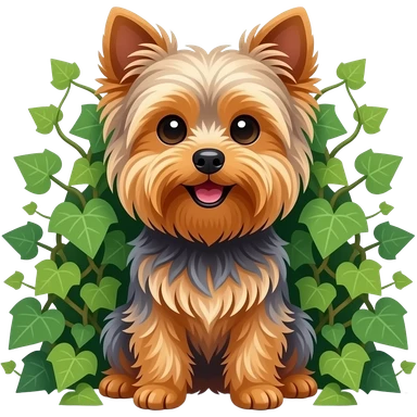 Yorkie dog smiling sitting among ivy emoji