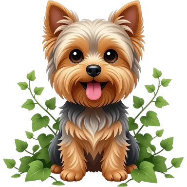 Yorkie dog sitting among ivy emoji