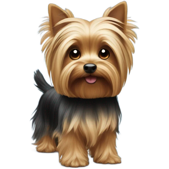 Yorkie with lowered down ears, mostly dark and grey, small emoji