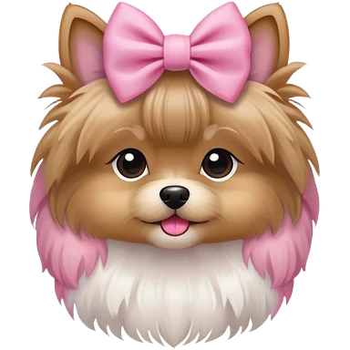 Yorkie Dog with Brown and black fur and brown eyes with short hair and a pink bow in her hair emoji