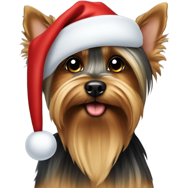 Yorkshire Terrier with a Santa Claus hat on his head emoji | AI Emoji Generator