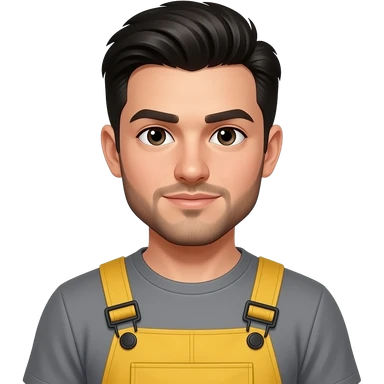 young adult man with light skin, short beard, dark brushed back hair, dark eyes, smug expression, wearing yellow hi vis full body overalls emoji | AI Emoji Generator