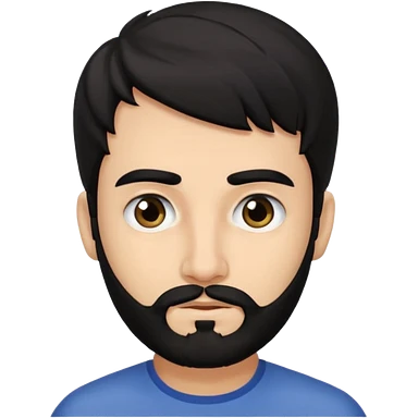 young adult man with light skin, short beard, dark wavy hair, relaxed expression, very wide rectangular glasses with thick black acetate frame and thick double bridge, retro oversized style, colorful open shirt and white t-shirt emoji | AI Emoji Generator