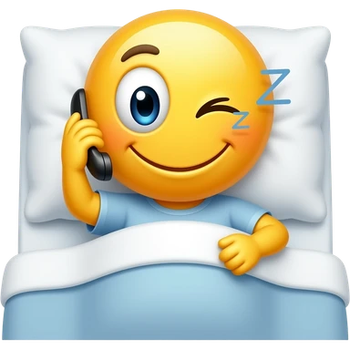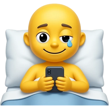 Yellow tired smiley reading phone messages in bed with one eye open sleepy expression emoji
