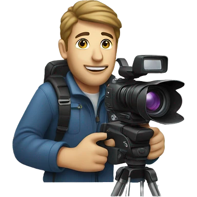 A cameraman holding a professional camera, capturing footage with a focused expression, moving carefully to get the perfect shot, surrounded by equipment and lights on a film set emoji