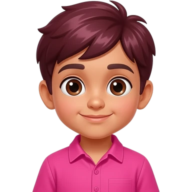 young boy with big eyes mehroon hairs wear vibrant pink clothes emoji