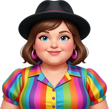 a beautiful lady chubby wear vibrant clothes and wear black collor hat emoji