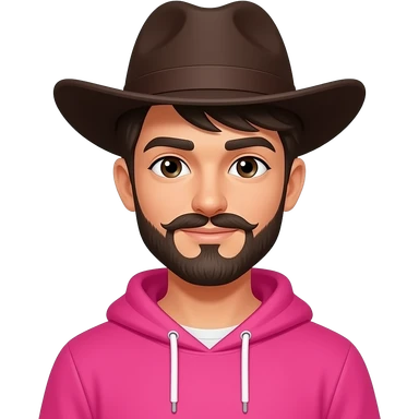a boy with beared and long mostache sharp features wide shoulders wear vibrant pink clothes and wear dark brown hat emoji