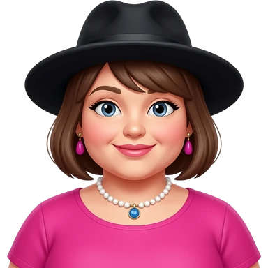 a beautiful lady chubby wear vibrant pink color clothes and wear black collor hat emoji