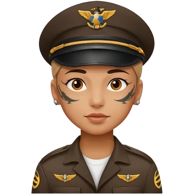 Young, wearing pilot uniform include hat, full tattoo on face emoji