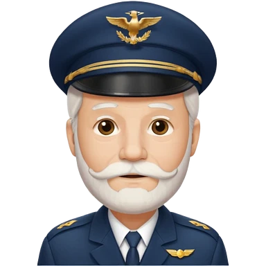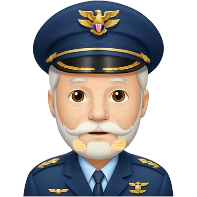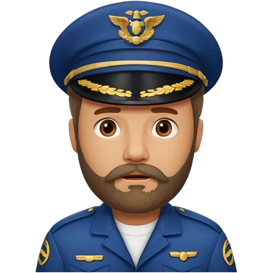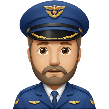 Middle-age, beard, wearing pilot uniform include hat, irritate attitude emoji