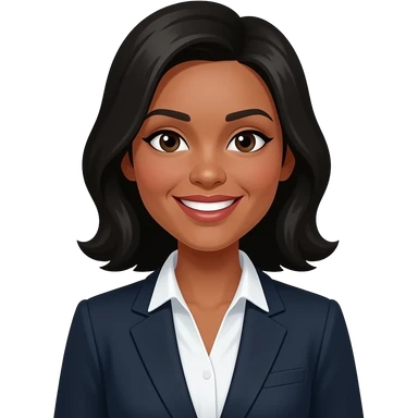 Professional African businesswoman with natural curly hair, wearing business suit, confident expression emoji