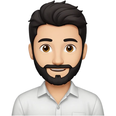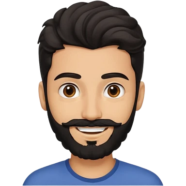 young fair skin pakistani guy smiling with black beard, wavy hair pushed back and brown eyes and thick eyebrows emoji