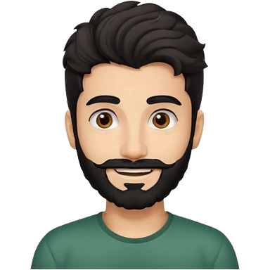 White man with thick black beard and short black wavy hair with thick eyebrows emoji