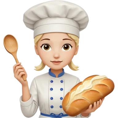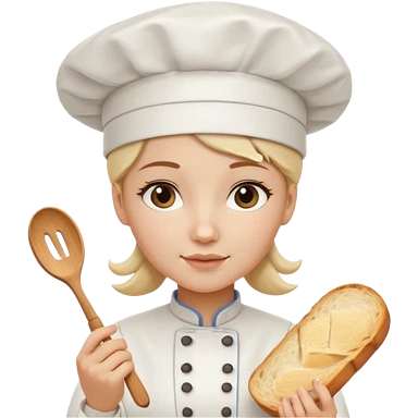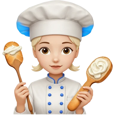 Young female baker – wearing white chef hat, holding a piping bag with cream emoji | AI Emoji Generator