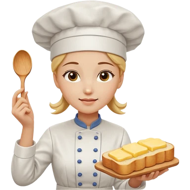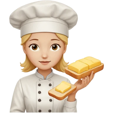 Young female baker - white chef hat, spreading butter on bread emoji