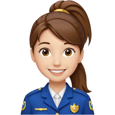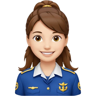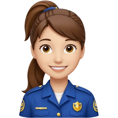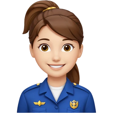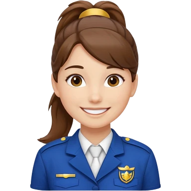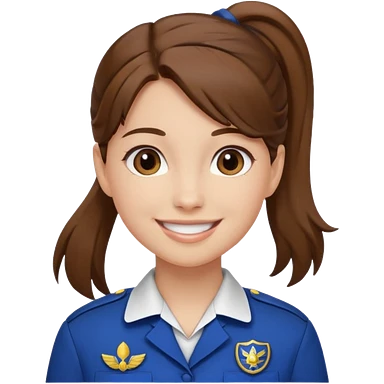 Young Female: ponytail brown haiir, wearing uniform, white skin, smile emoji