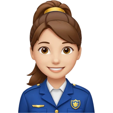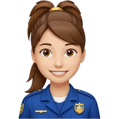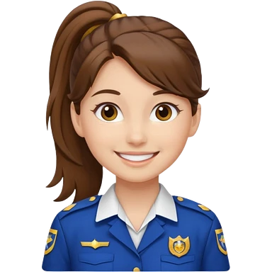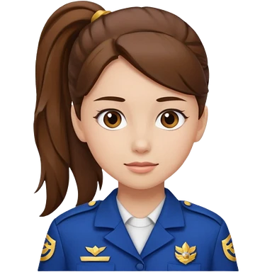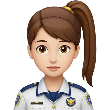 Young Female: ponytail brown haiir, wearing uniform, white skin emoji