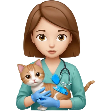 Brunette female vet with cat emoji