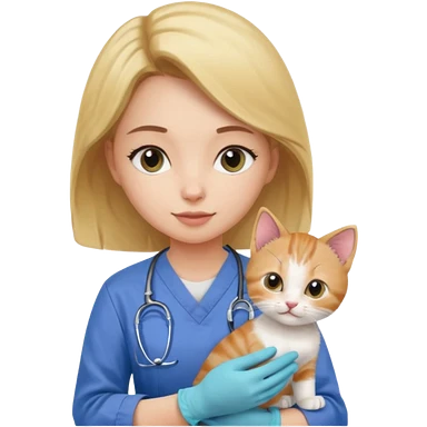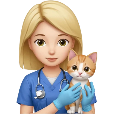 Young female vet – scrubs, gloves, examining kitten. emoji | AI Emoji Generator
