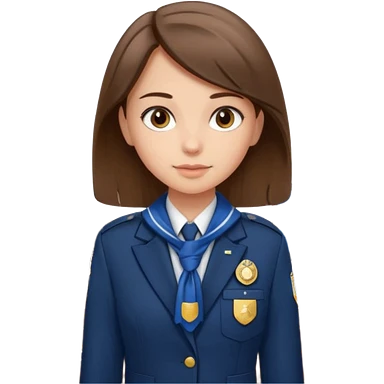 Young girl, straight hair, wearing uniform jacket with hotel name badge, tasteful scarf, stand behind the desk emoji | AI Emoji Generator