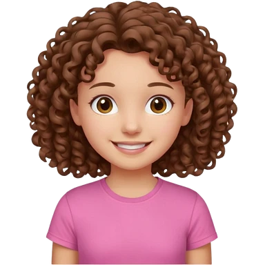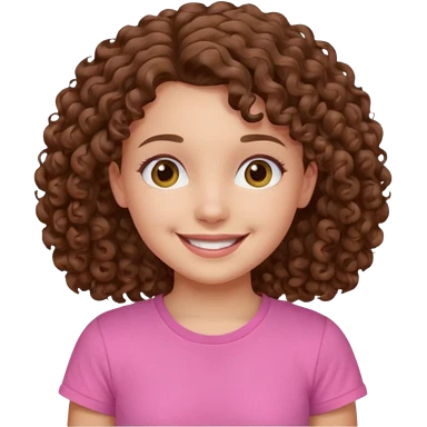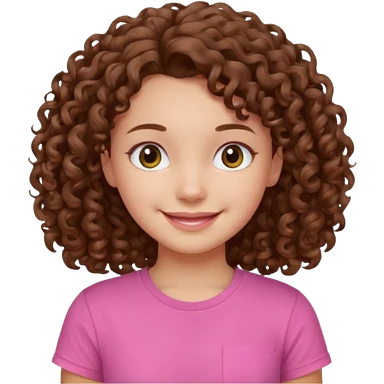 Young girl with curly hair and a pink T-shirt, looking happy emoji