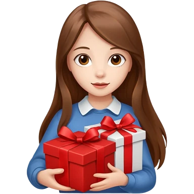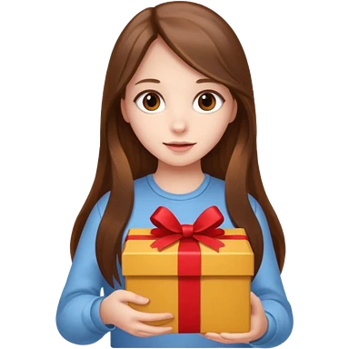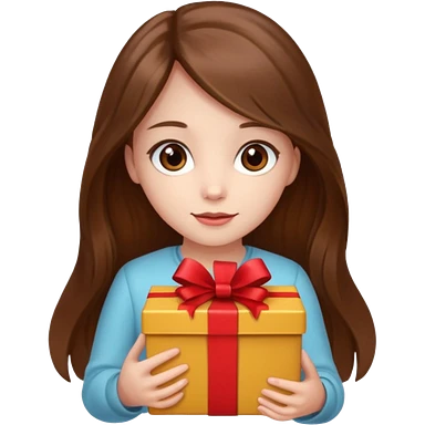 young girl with gift box, brown long hair emoji | AI Emoji Generator