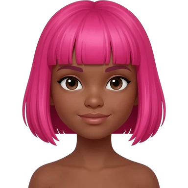 Black young girl hot pink bob hair cut with hot pink bangs emoji