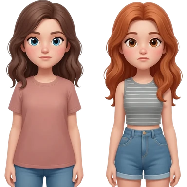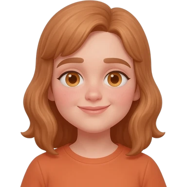 Young girl with red, damaged, and unattractive hair, wearing a purple T-shirt, with a sad and subdued expression. emoji | AI Emoji Generator