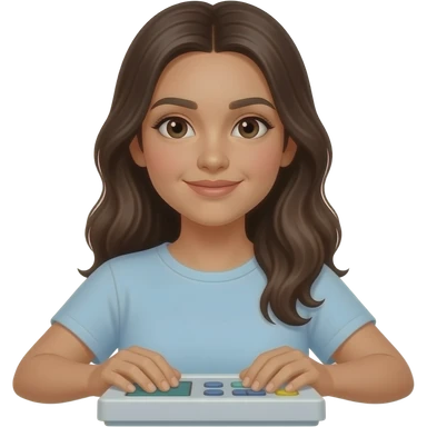 hispanic girl, long brown hair, brown eyes, full body, glasses, young, light blue winter sweater emoji