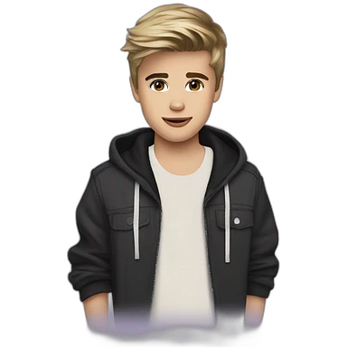 Justin Bieber, around 16, casual clothes, singing into mic emoji